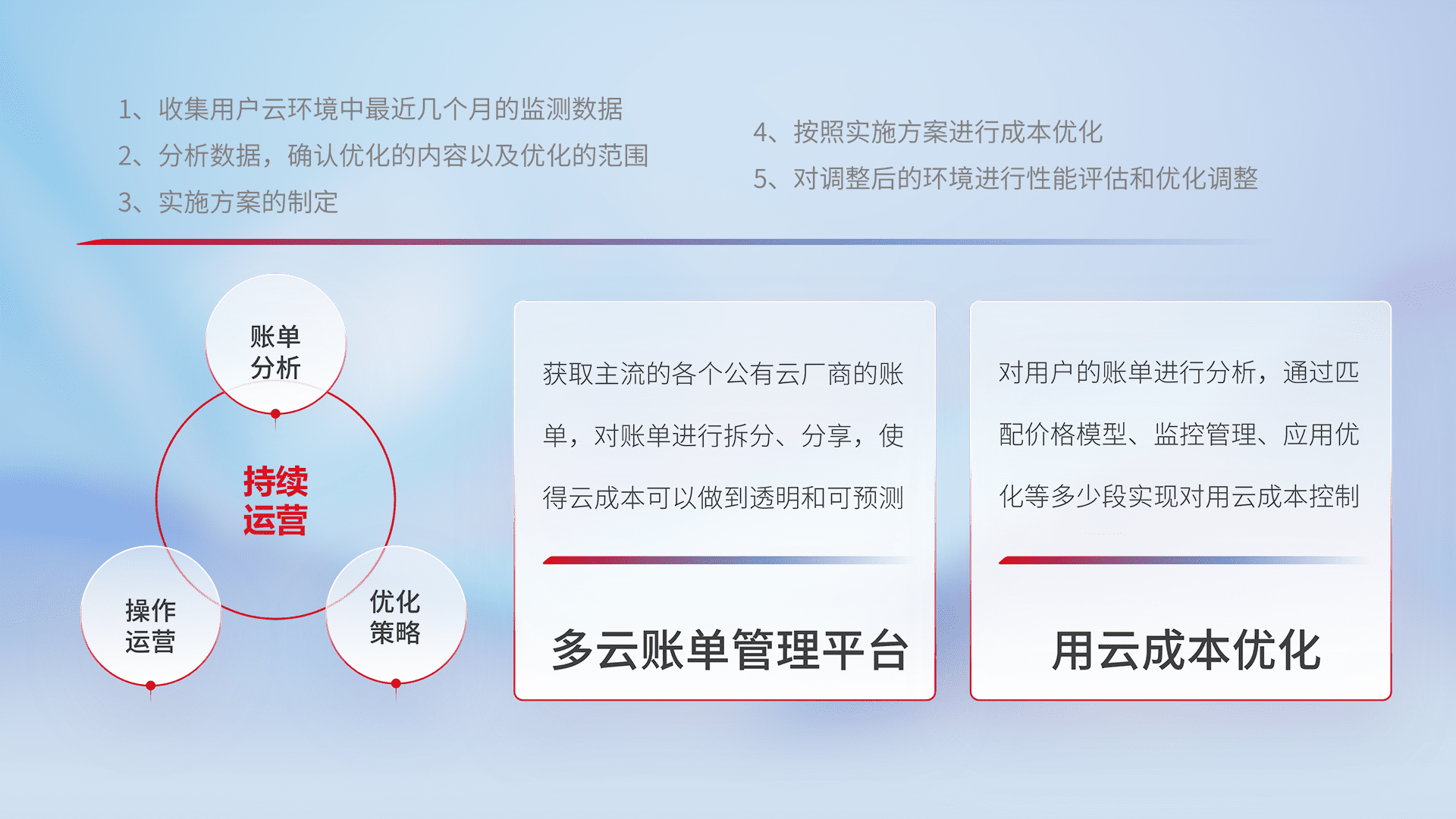 运用智能化工具分析云资源,,,提供日常费用可视化工具,,,,自动账单拆分,,,,成本优化云上费用,,,,降本增效。。。。