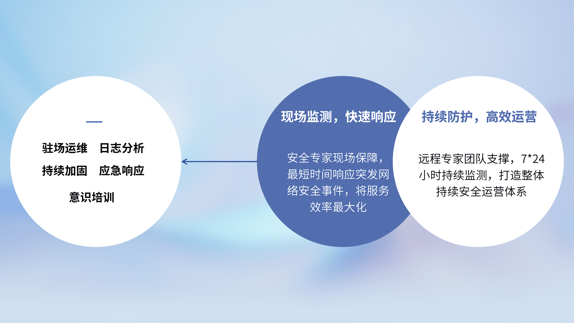 7X24小时持续监测安全事件,保持安全策略有效性,降低资产脆弱性风险,,,,精准拦截黑客攻击,,,减少被黑客利用的机会,,,,第一时间遏制,,,降低损失。。